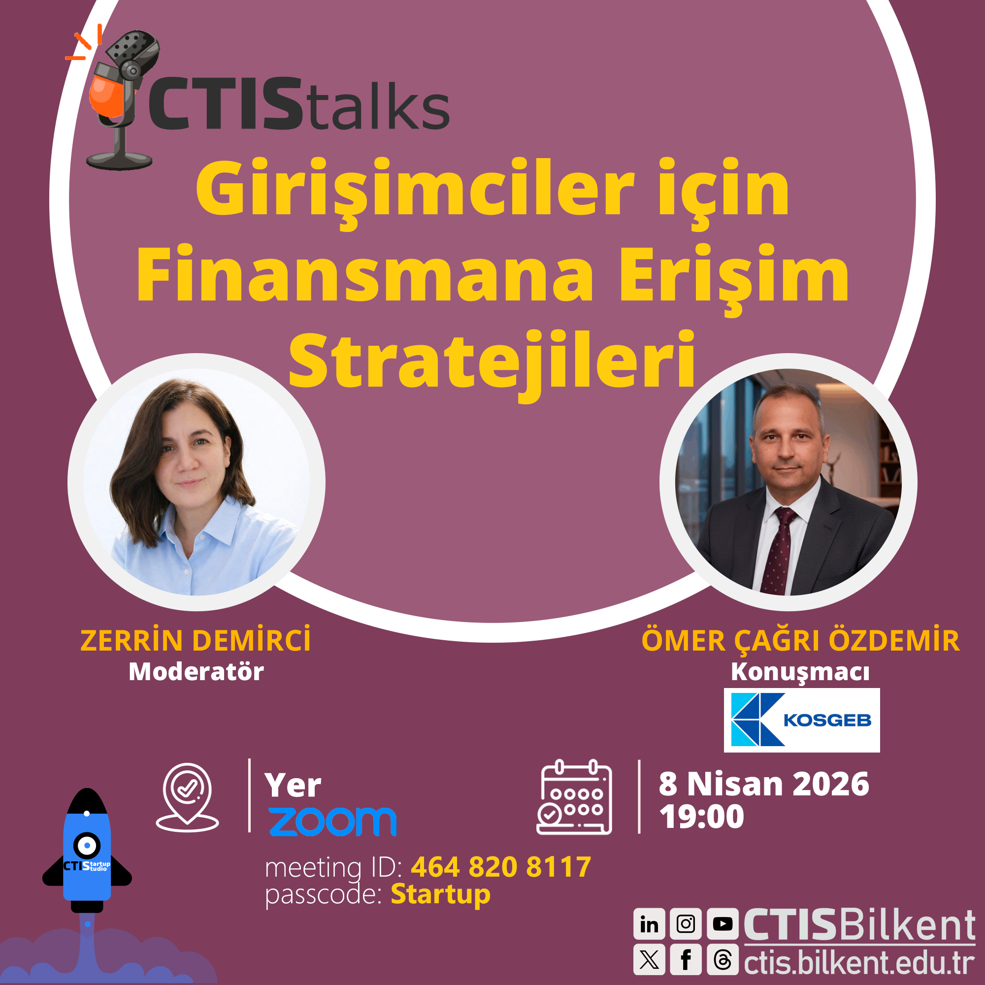 Seminar: "Girişimciler için Finansmana Erişim Stratejileri" by Ömer Çağrı Özdemir, Moderatör: Zerrin Demirci, KOSGEB. Apr. 08, 2026 at 19:00, via Zoom