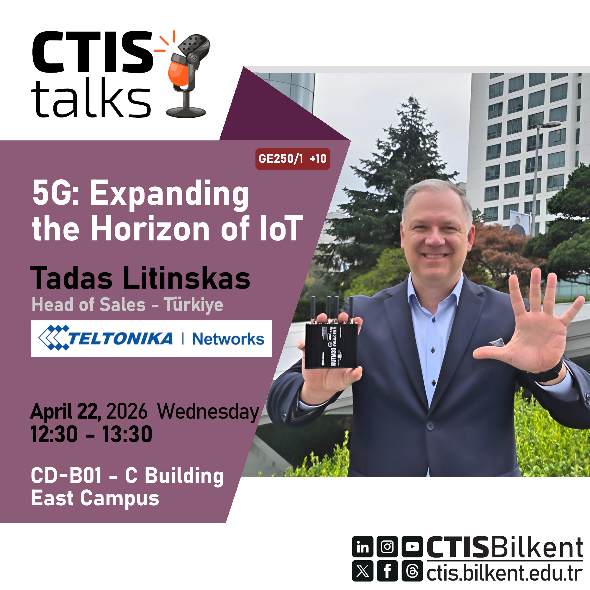 Seminar: " 5G: Expanding the Horizon of IoT" by Tadas Litinskas, Head of Sales Türkiye, Teltonika Networks. Apr. 22, 2026 at 12:30-13:30, in CD-B01 C Building East Campus