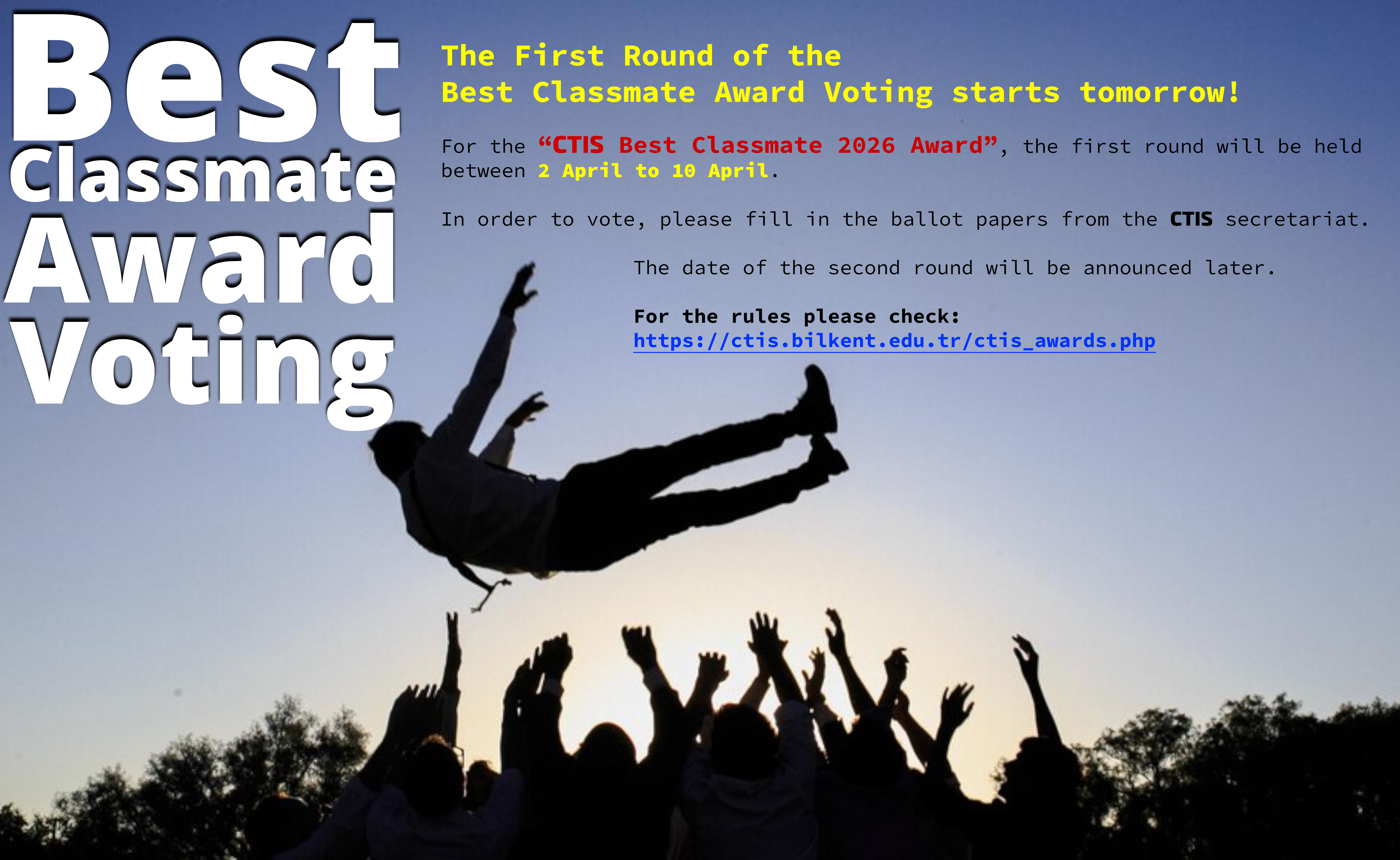 For all the rules of the CTIS Awards please check: https://ctis.bilkent.edu.tr/ctis_awards.php